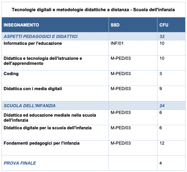 Tecnologie digitali e metodologie didattiche a distanza – Scuola dell’infanzia | 60 CFU