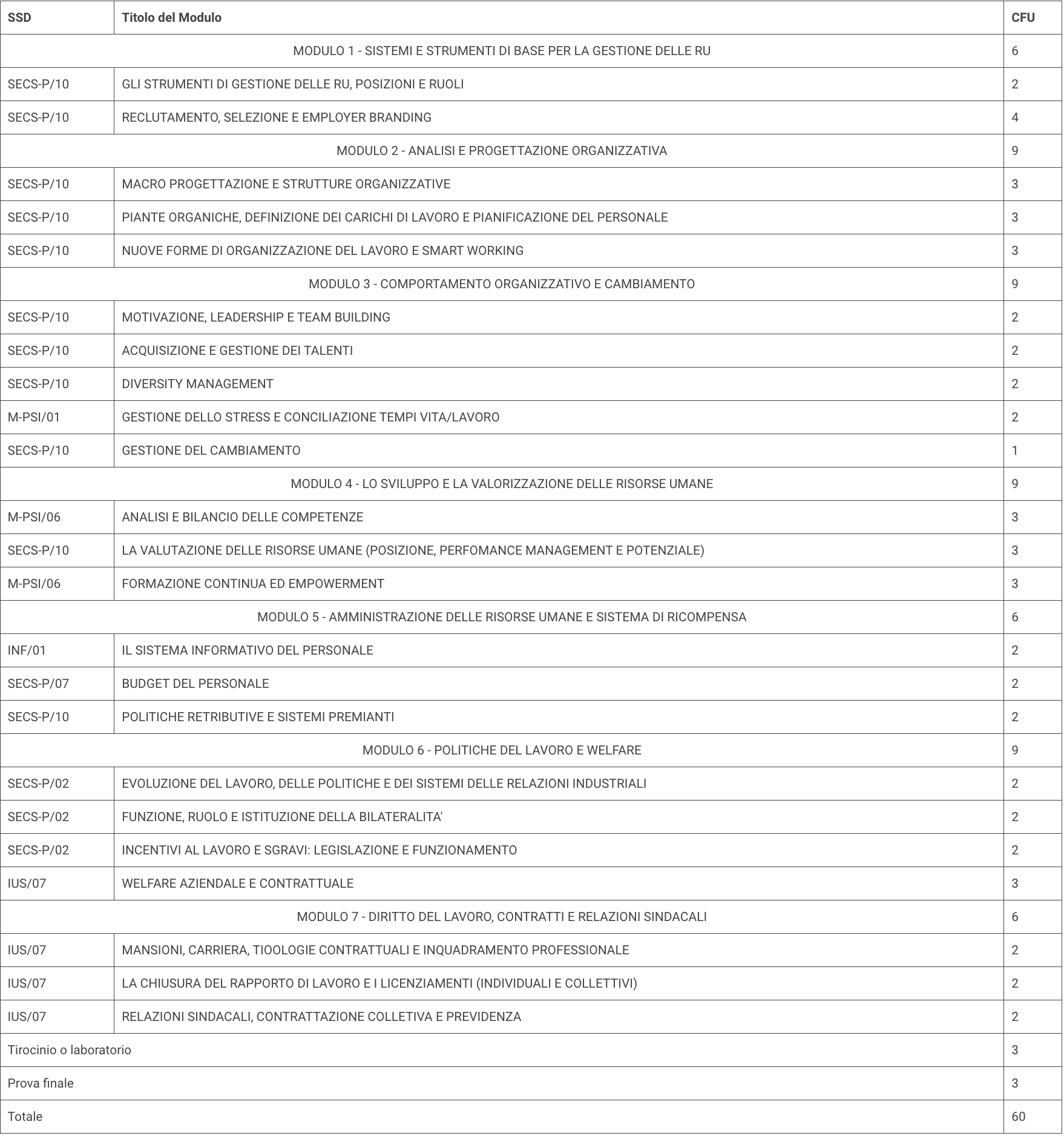 Master online in Risorse umane, lavoro e organizzazione | 1° livello